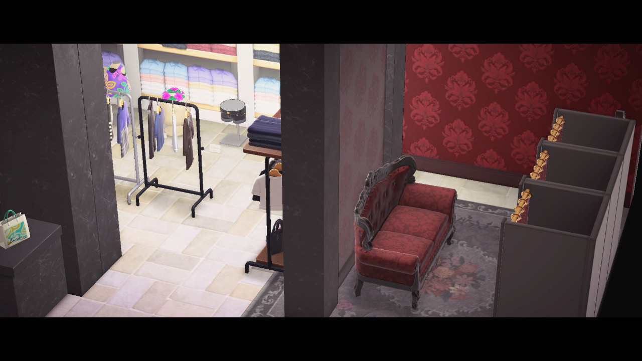 Den Anfang macht die Boutique. Die Boutique war die letzte der Einrichtungen bevor es eine Party mit Abspann gab. Also die letzte Einrichtung bevor der DLC „durchgespielt“ war. Das wird mich aber nicht davon abhalten auch weiterhin Ferienhäuser einzurichten.