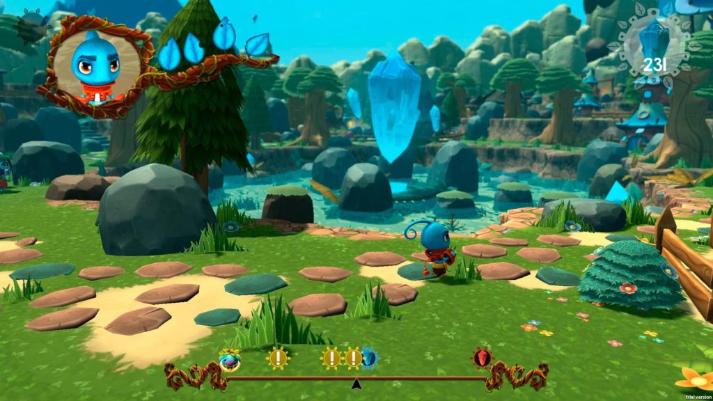 Die Level werden nämlich nicht einfach nacheinander freigeschaltet – wenngleich man durchaus ein Level immer erst freischalten kann wenn das Vorlevel beendet wurde – sondern sie haben Freischaltbedingungen, die an den Grad der Wiederherstellung des Dorfes geknüpft sind. Zwar muss man beileibe nicht alle Häuser wiederherstellen, doch obwohl ich das Spiel recht gründlich gespielt habe, musste ich am Ende noch etwas grinden um die letzten beiden Level spielen zu können. Aber auch abseits der Wiederherstellung des Dorfes sind die Oberwelten ziemlich nervig, da es einfach ziemlich lange dauert, von einem Level zum nächsten zu kommen. Besonders die zweite Hubwelt ist dank ihrer Unübersichtlichkeit nervenaufreibend.