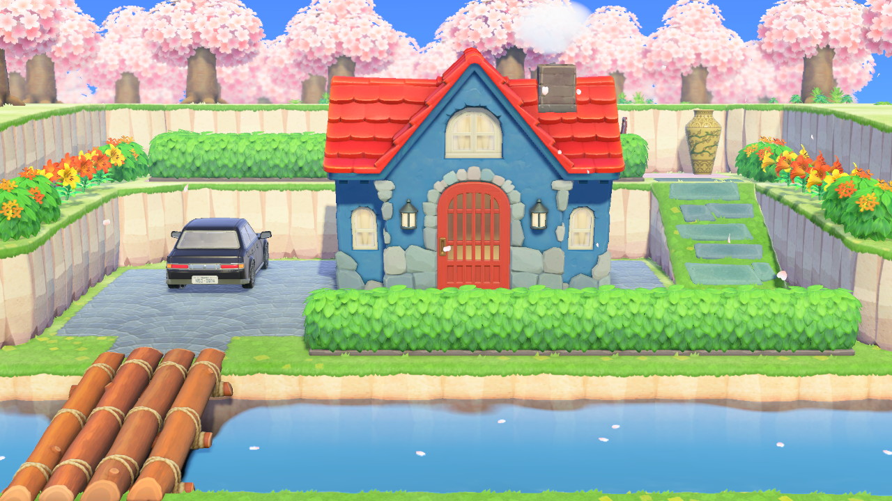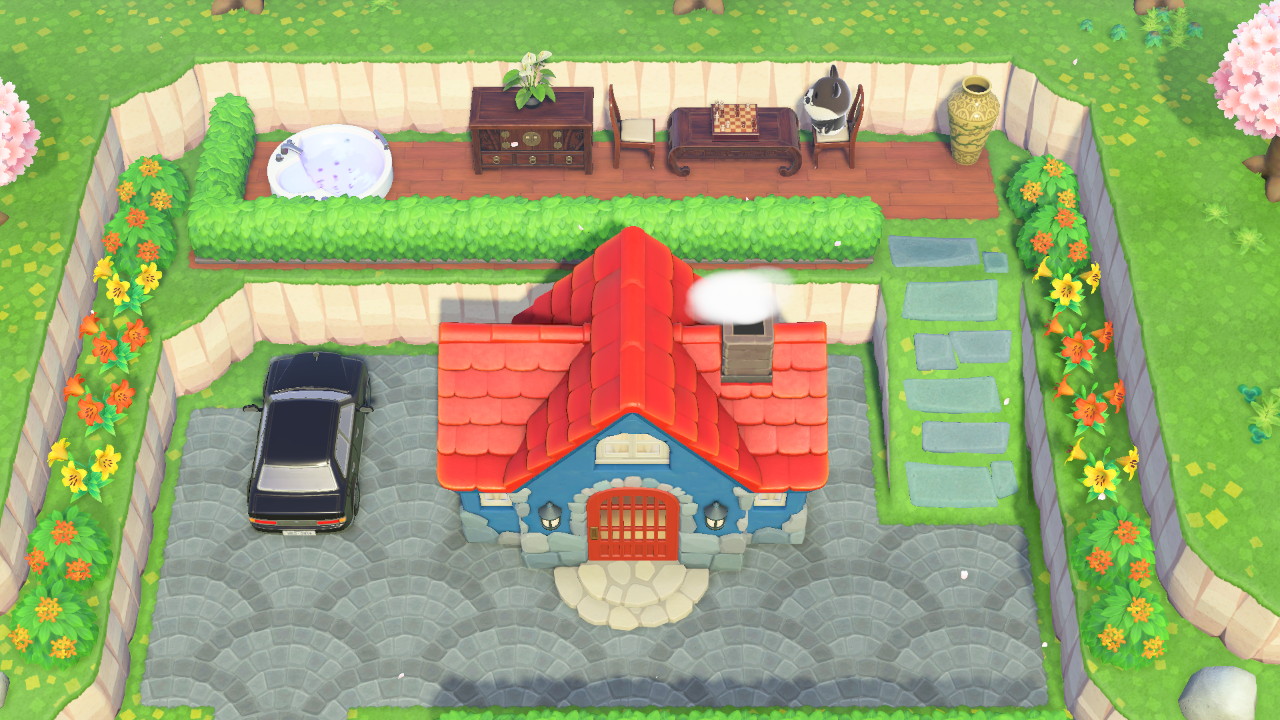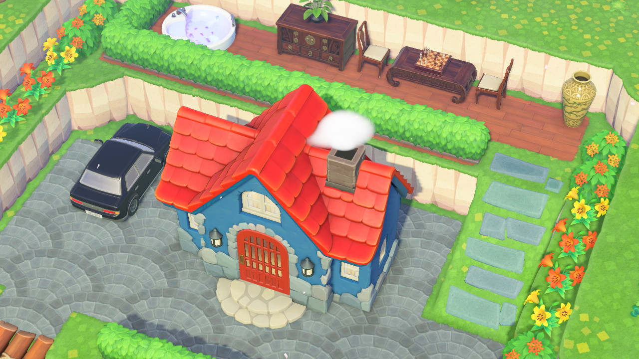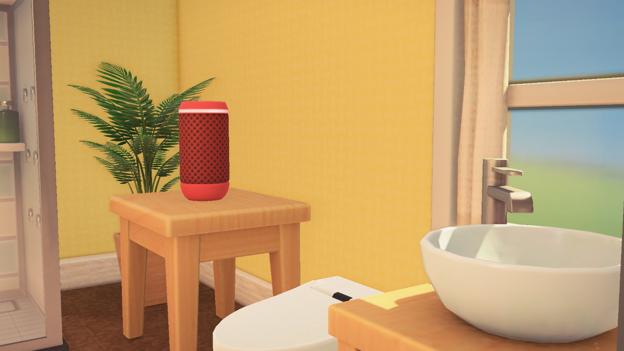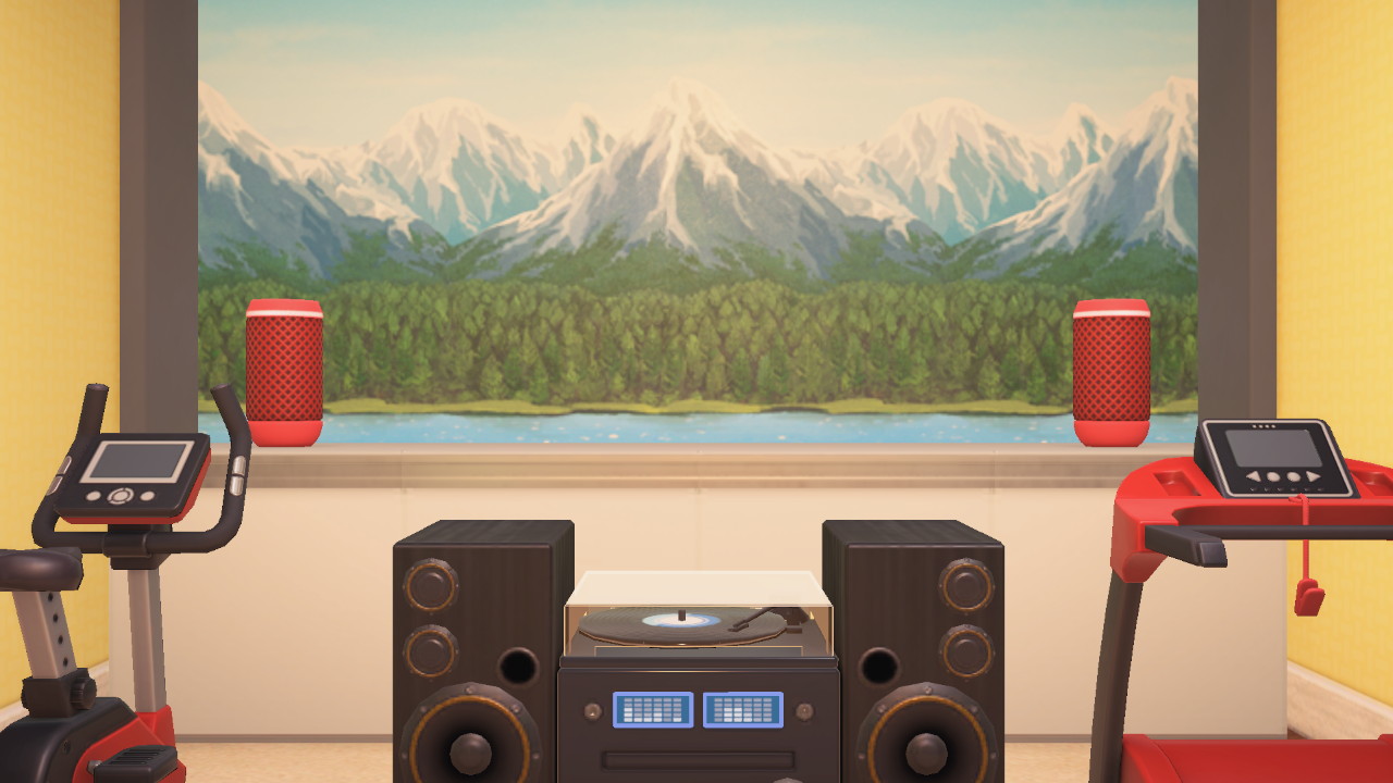 Eines meiner früheren Ferienhäuser in Animal Crossing: New Horizon – Happy Home Paradiese war das von Vivienne mit dem Thema Training und Musik. Zu dem Zeitpunkt waren die Tresen und Säulen noch relativ neu für mich. Daher habe ich gleich eine Menge davon eingesetzt für die Raumaufteilung. Der Trainingsraum ist mittig gegenüber dem Eingangsbereich und mit einer Anlage und ein paar Trainingsgeräten ausgestattet. Während des Trainings kann man den Ausblick durch das große „Fenster“ genießen.