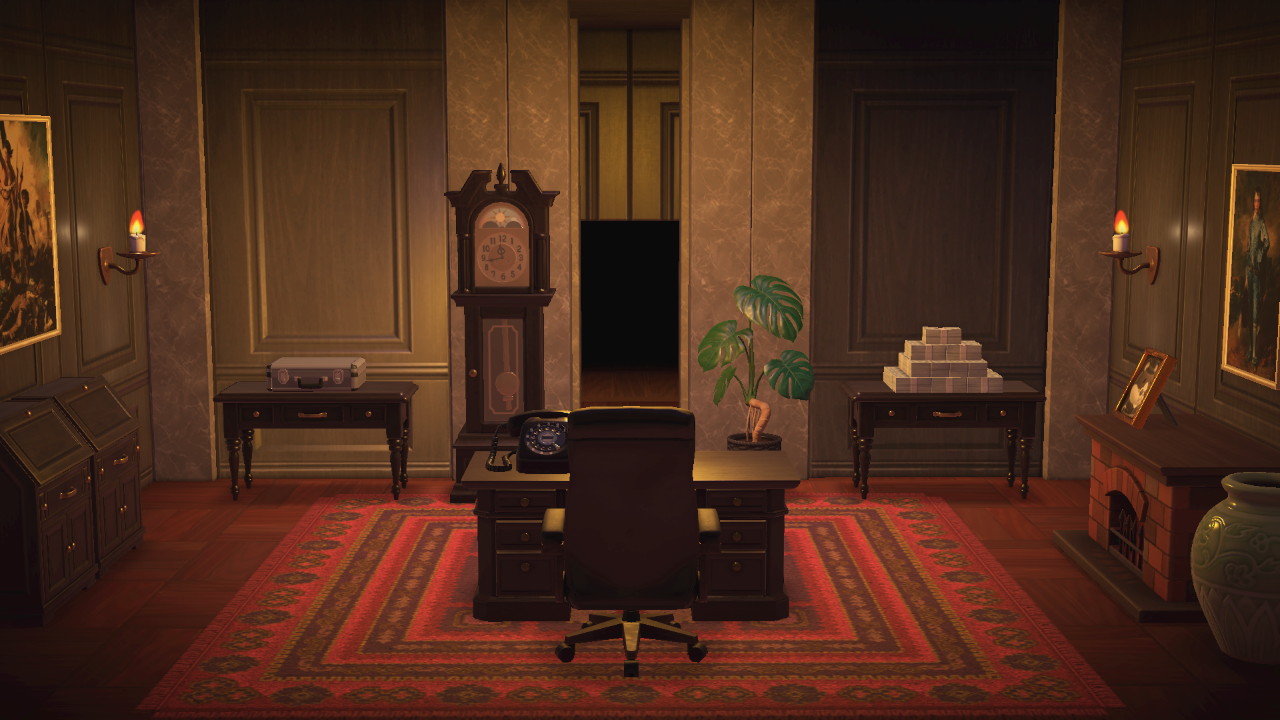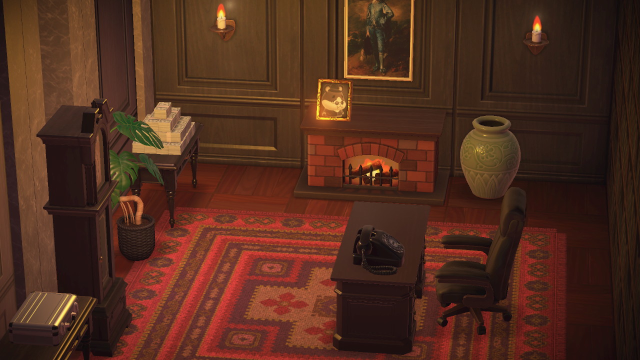 Marlo hat sich als Ferienhaus ein Filmstar-Büro gewünscht. Ich habe das Ferienhaus also mit einem großen Büro ausgestattet. Marlo scheint sehr erfolgreich zu sein, da das Büro relativ edel ausgestattet ist. Auch die Kunstwerke und sogar ein riesiger Geldstapel zeugen von seinem Wohlstand. Der Fokus lag natürlich auf dem Büro, daher hat er nur noch ein kleines Schlafzimmer und wie es sich für einen Filmstar gehört ein kleines Ankleidezimmer bekommen. Marlos Büro könnte aber auch einem Mafiaboss gehören, wer weiß was Marlo wirklich beruflich macht.