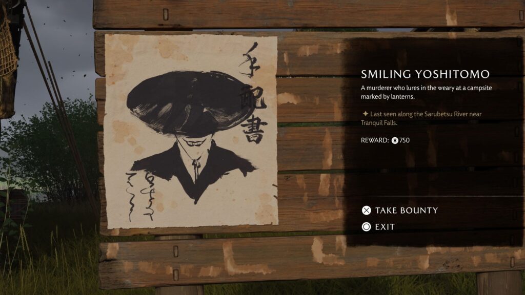 Auch als Kopfgeldjäger darf sich Atsu betätigen und muss teils im Zielgebiet suchen. Dort gibt es ebenfalls nicht nur Geld und Material als Belohnung. Kopfgeldplakate für den Onryo habe ich auch gerne eingesammelt, obwohl man dieses Kopfgeld natürlich nicht sammelt. Dabei steigt es im Storyverlauf sogar und das Bild wird detaillierter, ein netter Touch.