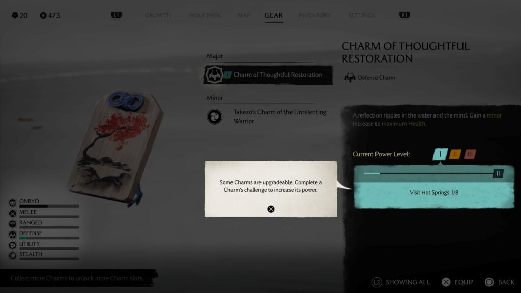 Ghost of Yōtei hat zwar keine allzu komplizierten RPG-Elemente, man sollte sich aber etwas um seine Ausrüstung kümmern. Teils verbessert man Ausrüstung nur, aber man kann auch dem Spielstil gemäß Anpassungen vornehmen. Waffen und manche Wurfitems lassen sich mit Material und teils Geld verstärken, bei zweiterem und Pfeilen auch die Tragekapazität erhöhen.