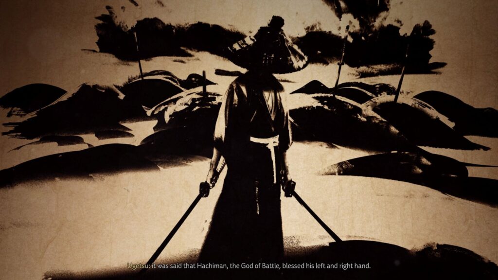Ein paar Quests behandeln Legenden von Kämpfern oder Ausrüstung. Diese werden atmosphärisch mit Tintenbildern eingeführt. Teilweise gibt es übernatürlich angehauchte Elemente in dem sonst recht bodenständigen Spiel, aber das fand ich in dem Maß völlig in Ordnung. Ich habe gern alle Quests gemacht.