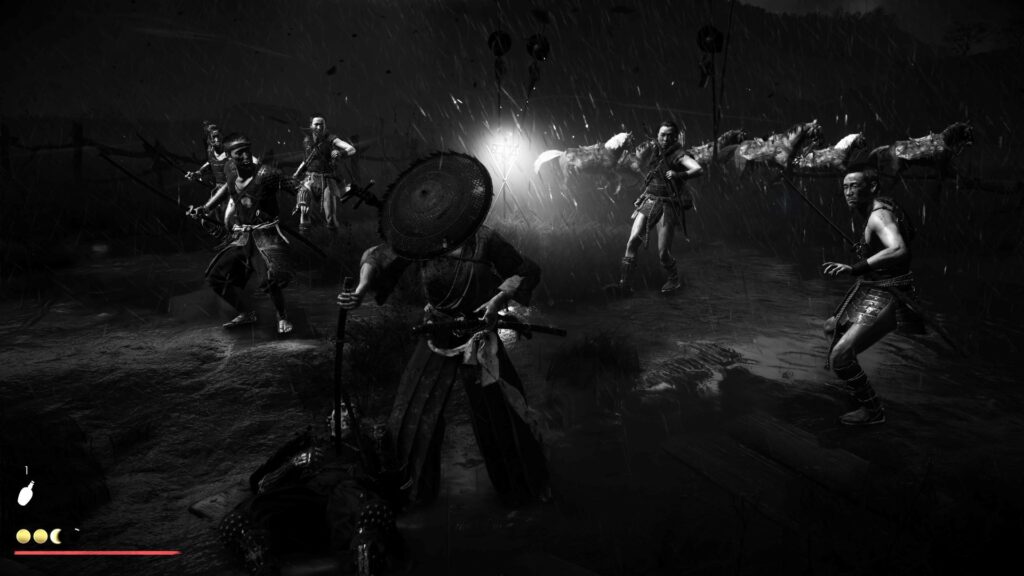 Als rachsüchtiger Geist kann Atsu oft wählen, wie sie an Gegner herangeht. Sie kann schleichen und mit manchen Umgebungsobjekten Gegner ablenken. Oder sie hinterrücks meucheln. Auch der Bogen kann beim geräuscharmen Töten helfen. Teilweise liegen Waffen herum, die als Wurfgeschoss effizient eingesetzt werden können. Wenn man entdeckt wird, kann man sich teils wieder verstecken. Aber je nach Alarmierungsgrad hilft auch hohes Gras nicht mehr.