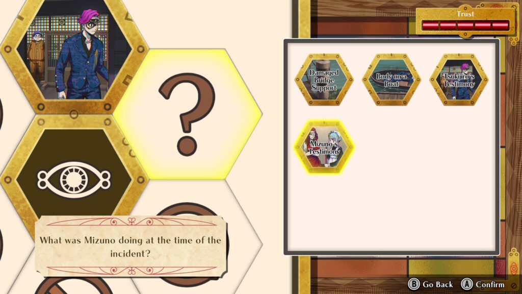 Mit etwas göttlicher Hilfe beginnt die Untersuchung. Beweise werden gesammelt und Personen verhört. Dann gilt es in gemeinsamer Runde, den Mörder zu finden. Misstrauen herrscht vor, wem kann man trauen? Mit den richtigen Hinweisen kann Rei der Wahrheit näher kommen.