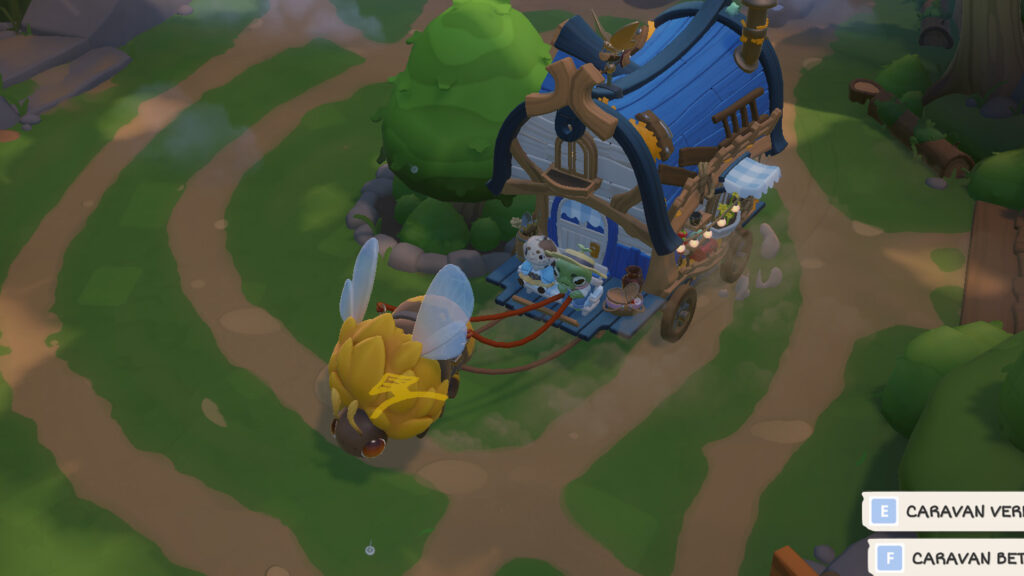 Cozy Caravan von 5Lives Studios gibt sich schon gleich zum Start sehr putzig. Ihr bastelt aus einer riesigen Tier-Auswahl von Katze bis Axolotl euren ganz persönlichen, knuffigen Charakter und erfreut euch an einer sehr niedlichen (und abschaltbaren) Stop-Motion Animationstechnik, die hervorragend zum Spiel passt. Danach reist ihr dann mit eurem titelgebenden Caravan, gezogen von einer kuschligen Riesenbiene namens Rigby und organisiert von eurem Froschkollegen Bubba, durch eine kleine, aber ebenso knuffige Welt namens Harvestvale. Nebenbei sammelt ihr Rezepte, die ihr verkochen könnt, erfüllt kleine und große Aufgaben, vervollständigt Sammlungen und lernt dabei nicht nur Harvestvale, sondern auch jede Menge seiner Einwohner kennen.