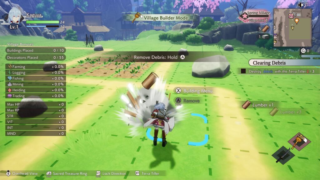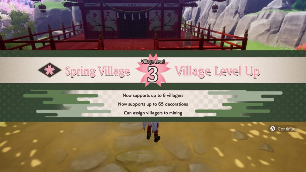 Was liegt näher, als dem frisch gebackenen Earth Dancer die Ehre zukommen zu lassen, sich um den Wiederaufbau der Dörfer zu kümmern? Zum einen wollen Entwicklungsgebiete von Hindernissen befreit werden, damit man Felder und Gebäude darauf platzieren kann. Durch Erreichen diverser Ziele kann man dann das Dorflevel erhöhen, was neue Gebäude und oft hilfreiche Dekorationen freischaltet, aber auch die maximale Bevölkerung erhöht.