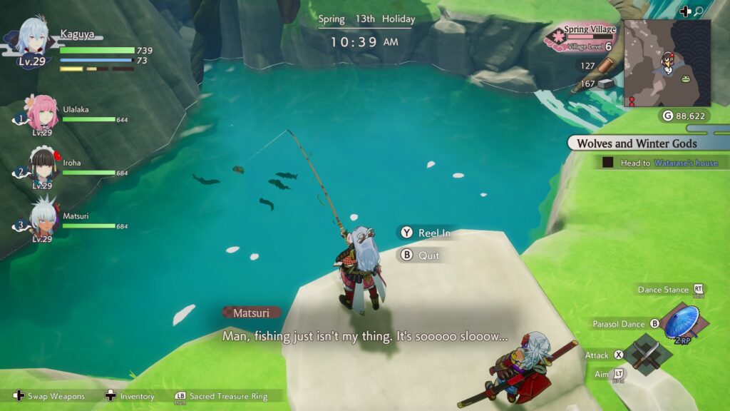 Ich spiele nicht oft Cozy Games und habe kaum Farmspiele gespielt. Aber ich habe mich auf eine bunte Mischung von Aktivitäten eingelassen, die bewusst nicht zu komplex werden, sondern zugänglich bleiben. Dorfmanagement und Feldarbeit bieten genug Freiheit für eigenes Tempo oder optische Gestaltung, oder man kümmert sich mehr um die Zahlen. Das Kampfsystem ist zugänglich und Gegner in der Regel schnell besiegt.